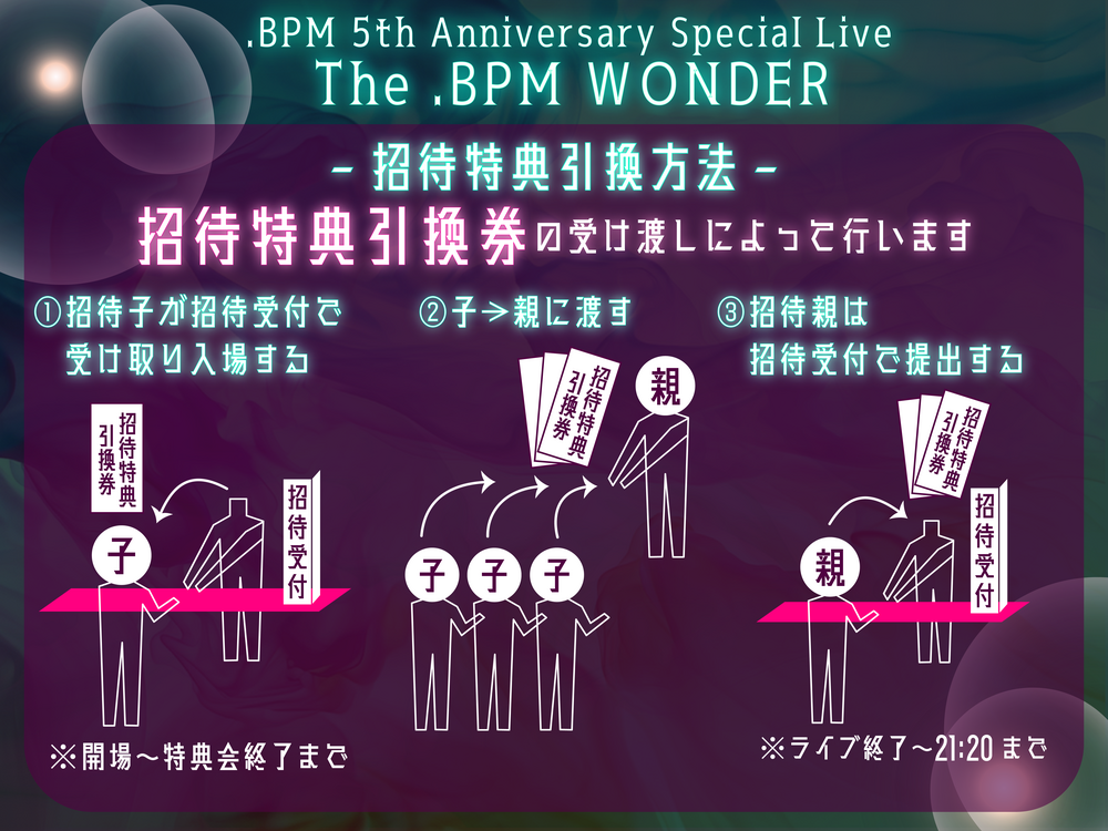 ③ ライブ当日、子は招待受付で応援チケットと共に