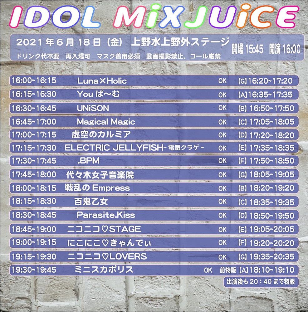 LIVE▶17:30~ 物販▶17:50~ 16:00 開場 16:15開演 1 ご入場 1,000円 2 撮影エリア前方 2,000円 3 中央左右最前列25席限定 3,000円