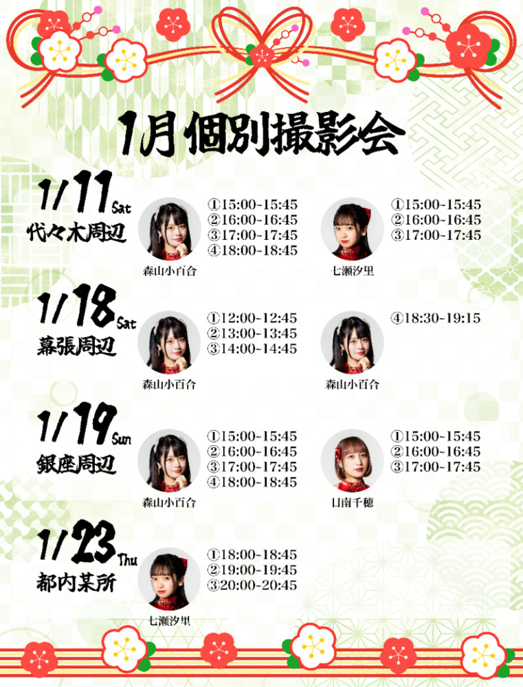 【銀座周辺】森山小百合&日南千穂 個別撮影会 LIVE/EVENT 2025/01/19(日) 15:00 - 19:00 銀座周辺 1/19(日) 15:00〜〈4枠〉 🙋♀️参加メンバー 森山小百合・日南千穂 ※4枠目は森山小百合のみ チケット1/9(木) 21:00〜 URLをコピーする 報告する