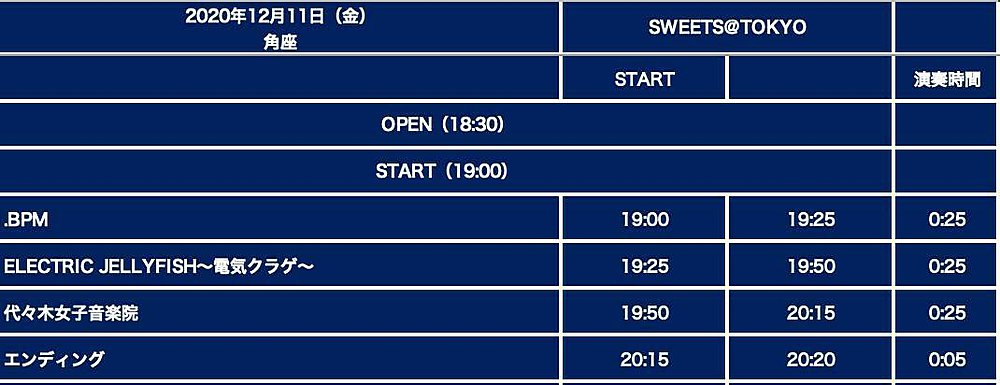 LIVE▶19:00~ 終演後物販▶20:25~ <前売>¥0+1drink(¥600) Op18:30 St19:00 【出演】 代々木女子音楽院 / ELECTRIC JELLYFISH~電気クラゲ~ / .BPM